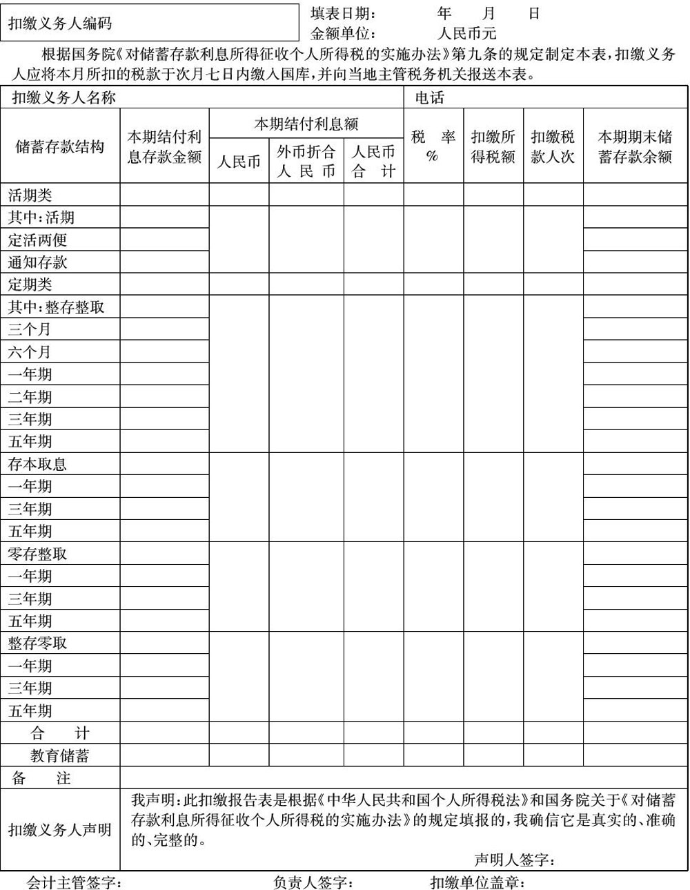 儲蓄存款利息所得扣繳個(gè)人所得稅報(bào)告表