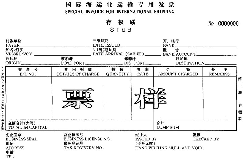 國(guó)際海運(yùn)公司和外商獨(dú)資船務(wù)公司及其分公司使用《國(guó)際海運(yùn)業(yè)運(yùn)輸專(zhuān)用發(fā)票》,國(guó)際海運(yùn)船舶代理公司使用《國(guó)際海運(yùn)業(yè)船舶代理專(zhuān)用發(fā)票》。