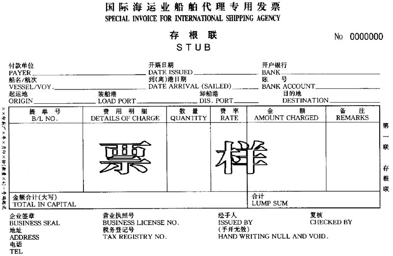 2.《國(guó)際海運(yùn)業(yè)船舶代理專(zhuān)用發(fā)票》票樣