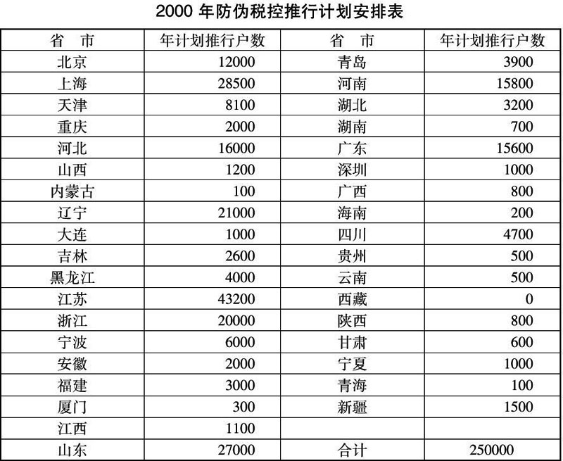 ????2.2000年防偽稅控推行計劃安排表