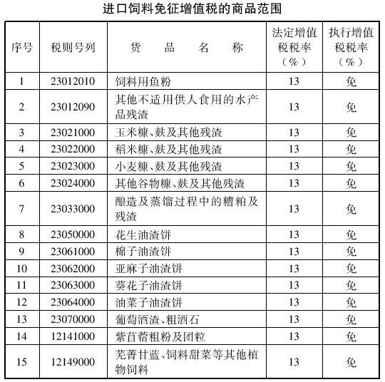 附件:進(jìn)口飼料免征增值稅的商品范圍