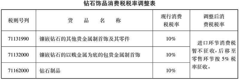 二、鉆石飾品消費(fèi)稅稅率調(diào)整表