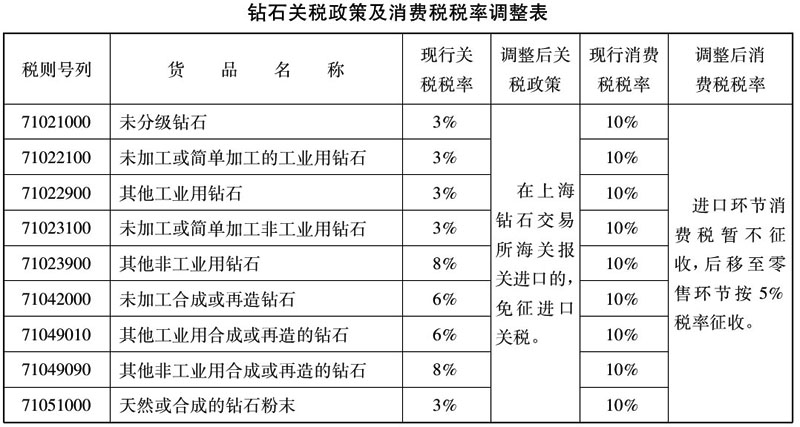 附件:一、鉆石關(guān)稅政策及消費(fèi)稅稅率調(diào)整表