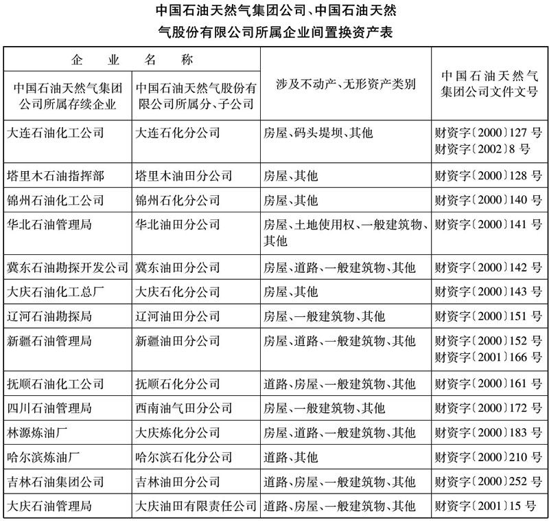 附件:中國石油天然氣集團公司、中國石油天然氣股份有限公司所屬企業(yè)間置換資產(chǎn)表