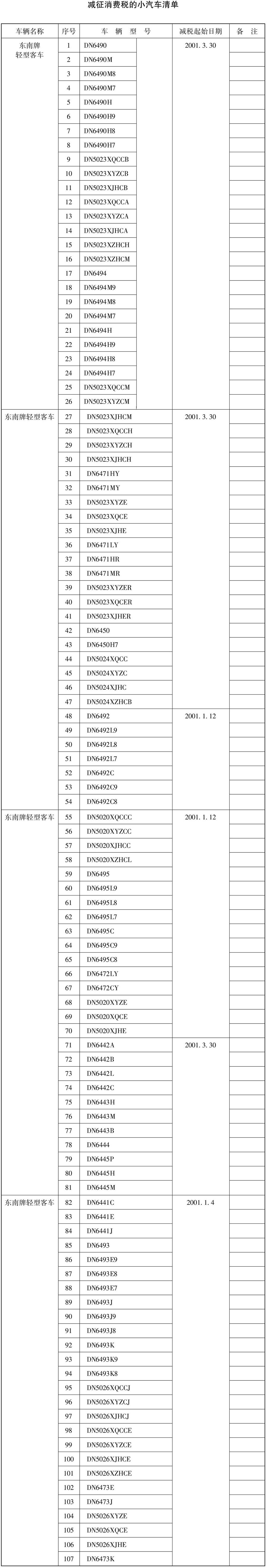 根據(jù)財政部、國家稅務(wù)總局《關(guān)于對低污染排放小汽車減征消費(fèi)稅的通知》(財稅〔2000〕26號)的規(guī)定,東南(福建)汽車工業(yè)有限公司生產(chǎn)的東南牌輕型客車,經(jīng)國家指定的檢驗(yàn)中心樣品檢驗(yàn)和生產(chǎn)一致性審查,達(dá)到《輕型汽車污染物排放限值及測量方法(Ⅱ)》規(guī)定的排放標(biāo)準(zhǔn),檢驗(yàn)程序符合財稅〔2000〕26號規(guī)定的要求。經(jīng)研究,對該公司生產(chǎn)銷售的東南牌輕型客車,準(zhǔn)予按應(yīng)納消費(fèi)稅稅額減征30%。文到之日以前應(yīng)減征的消費(fèi)稅可以辦理退稅或在以后應(yīng)交的消費(fèi)稅中予以抵減。具體享受減征消費(fèi)稅的輕型客車名稱、型號及執(zhí)行日期見附件。請遵照執(zhí)行。