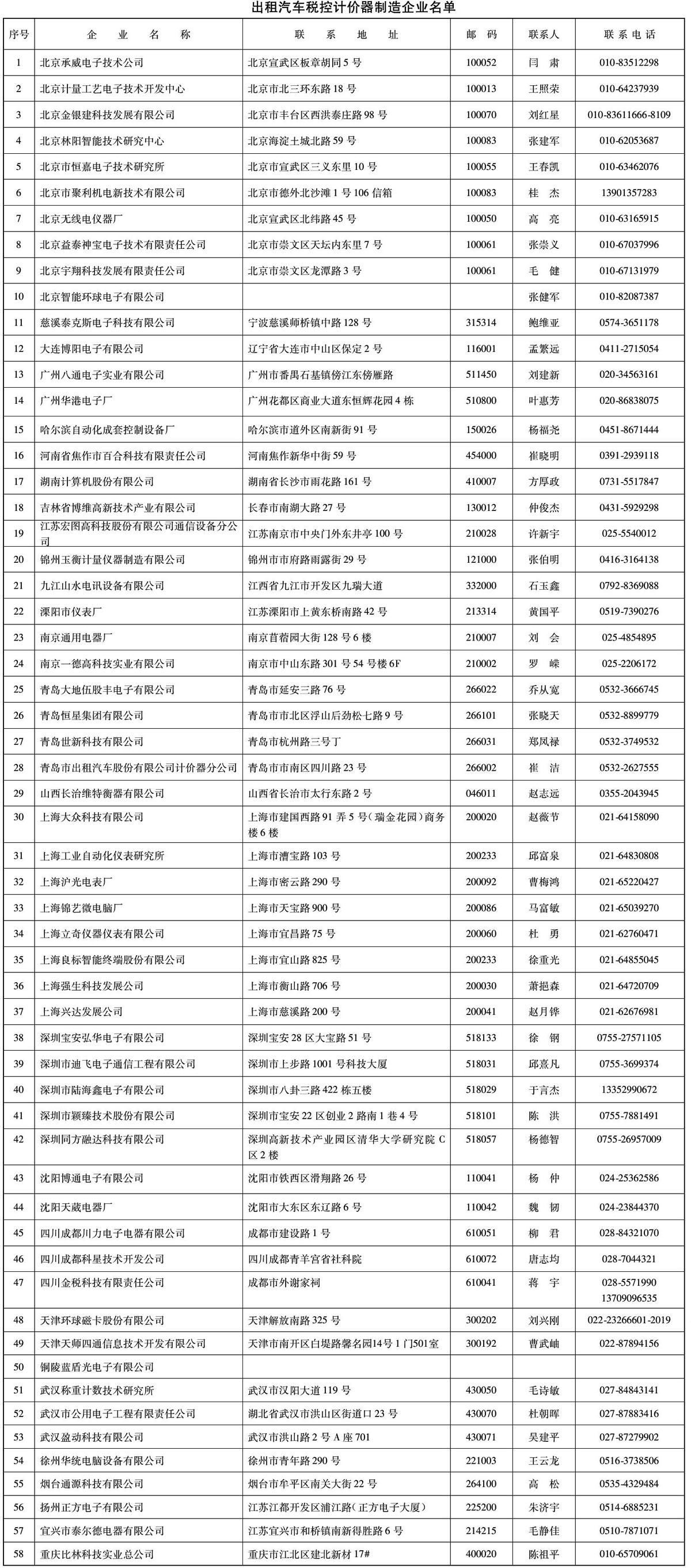 ????2.出租汽車稅控計(jì)價(jià)器制造企業(yè)名單