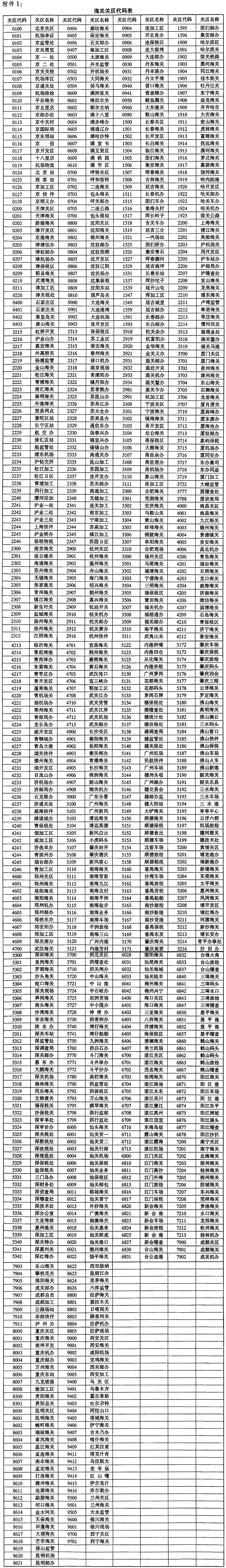 附件:1.海關(guān)關(guān)區(qū)代碼表