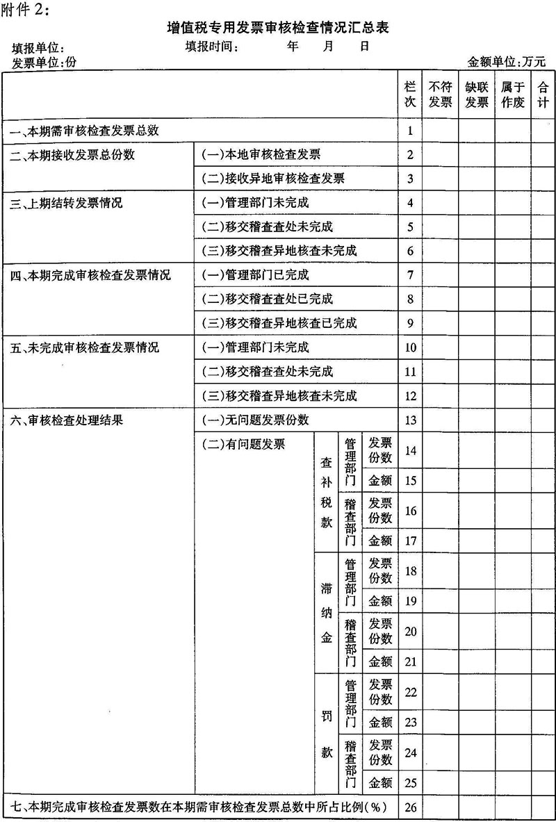 2.增值稅專用發(fā)票審核檢查情況匯總表