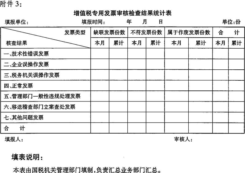 3.增值稅專用發(fā)票審核檢查結(jié)果統(tǒng)計(jì)表