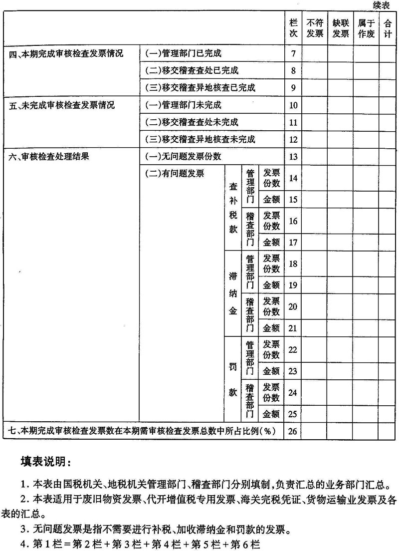 3.如果需由開(kāi)票方主管稅務(wù)機(jī)關(guān)繼續(xù)審核檢查的,交由開(kāi)票方主管稅務(wù)機(jī)關(guān)管理部門(mén)繼續(xù)審核檢查。