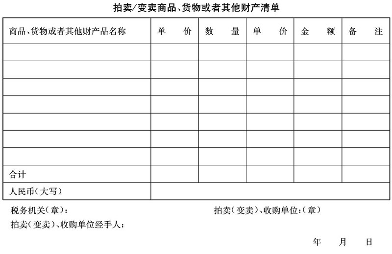 2.適用范圍:稅務(wù)機(jī)關(guān)拍賣(變賣)商品、貨物或者其他財(cái)產(chǎn)時使用。