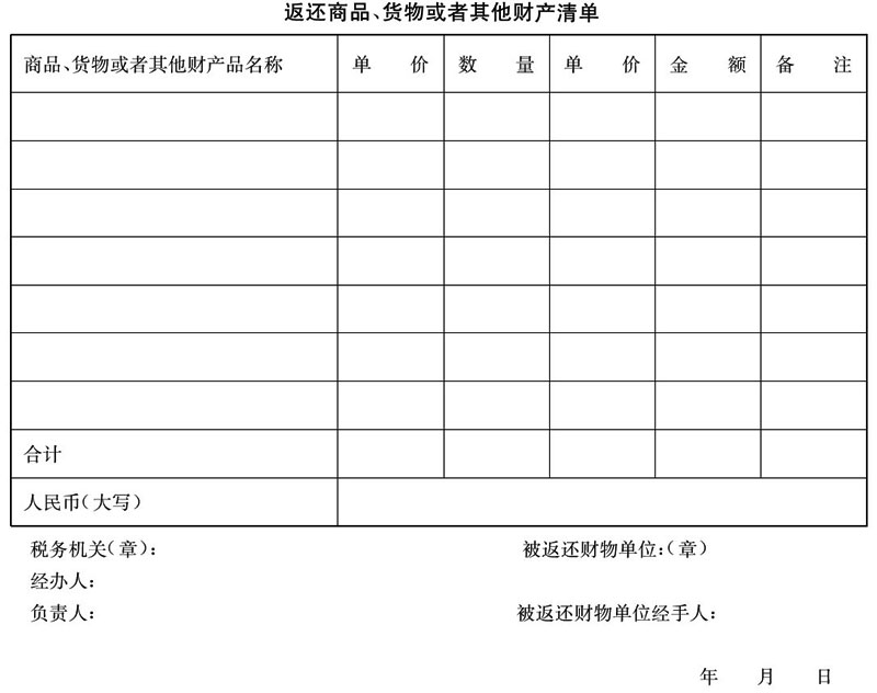 5.返還商品、貨物或者其他財(cái)產(chǎn)清單