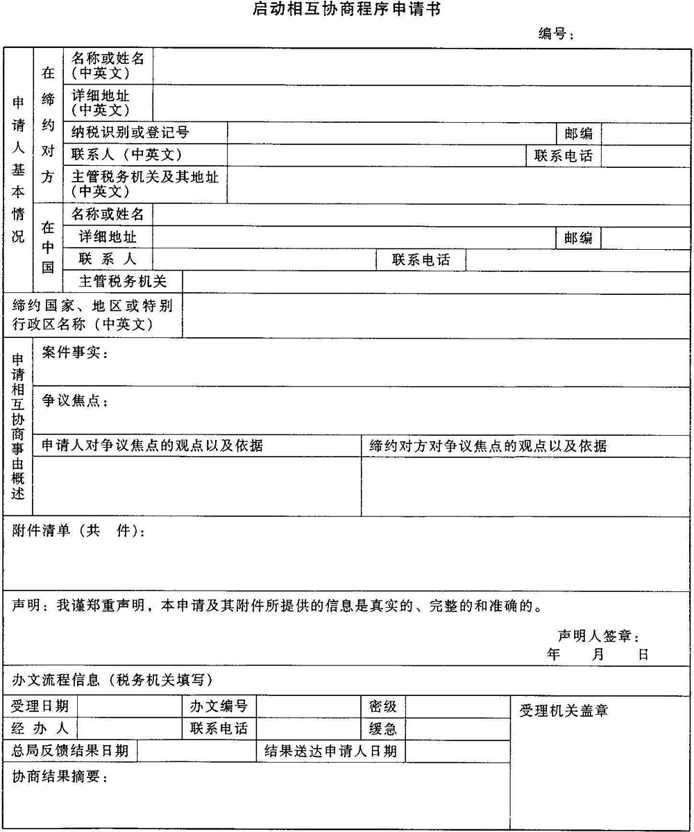 ????附件:啟動(dòng)相互協(xié)商程序申請(qǐng)書(編者略)