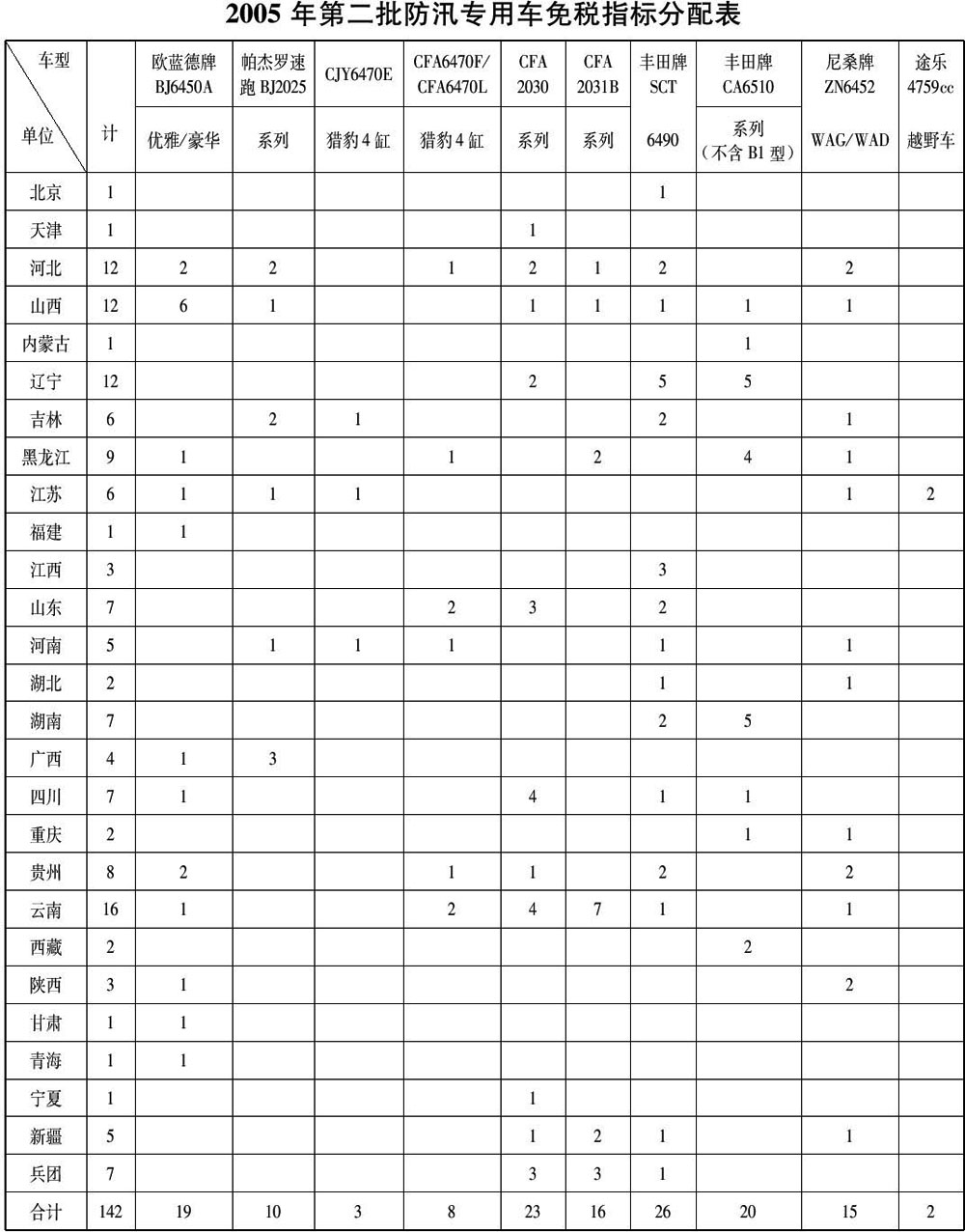附件:2005年第二批防汛專用車免稅指標(biāo)分配表