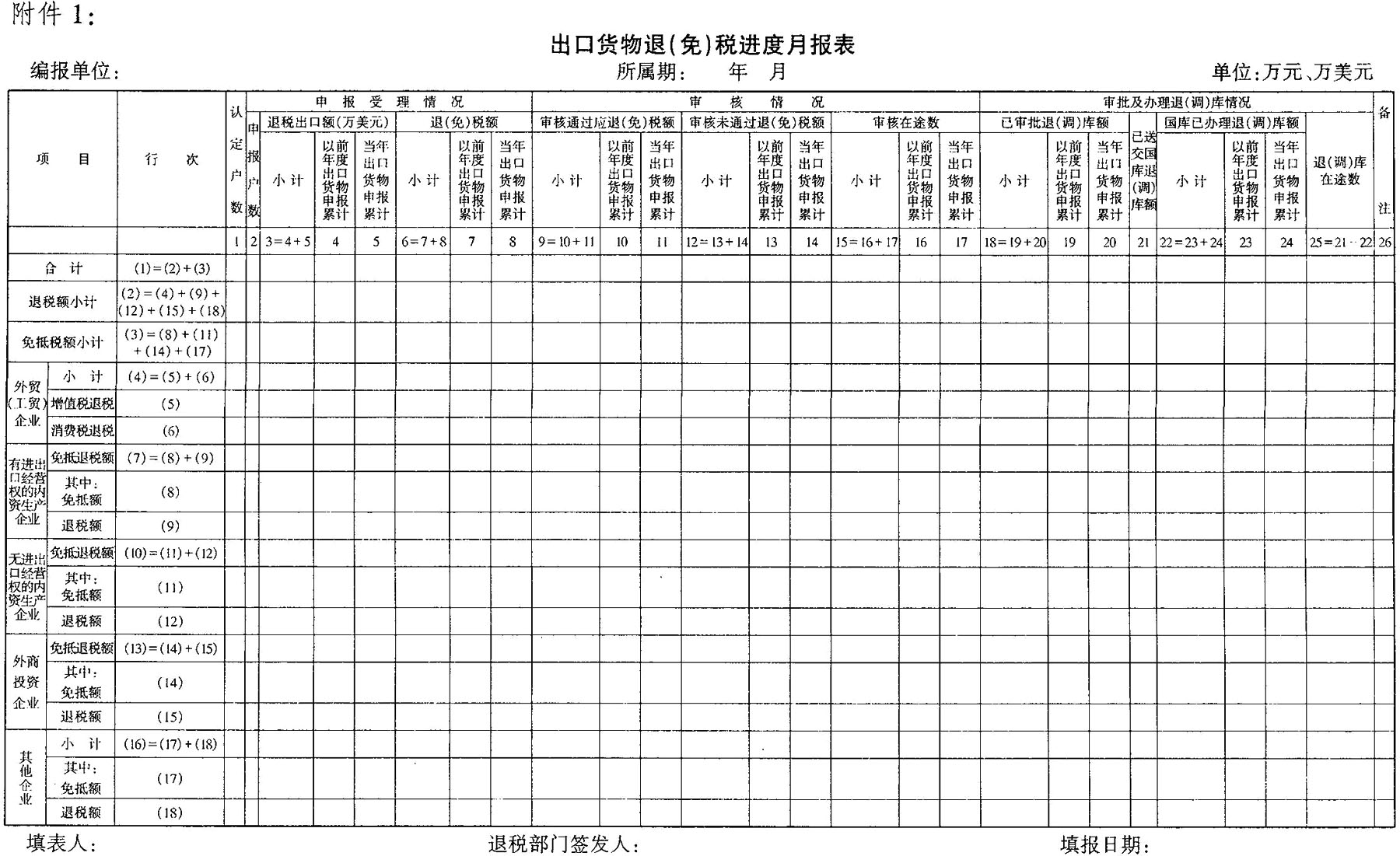????附件:1.出口貨物退(免)稅進(jìn)度月報(bào)表