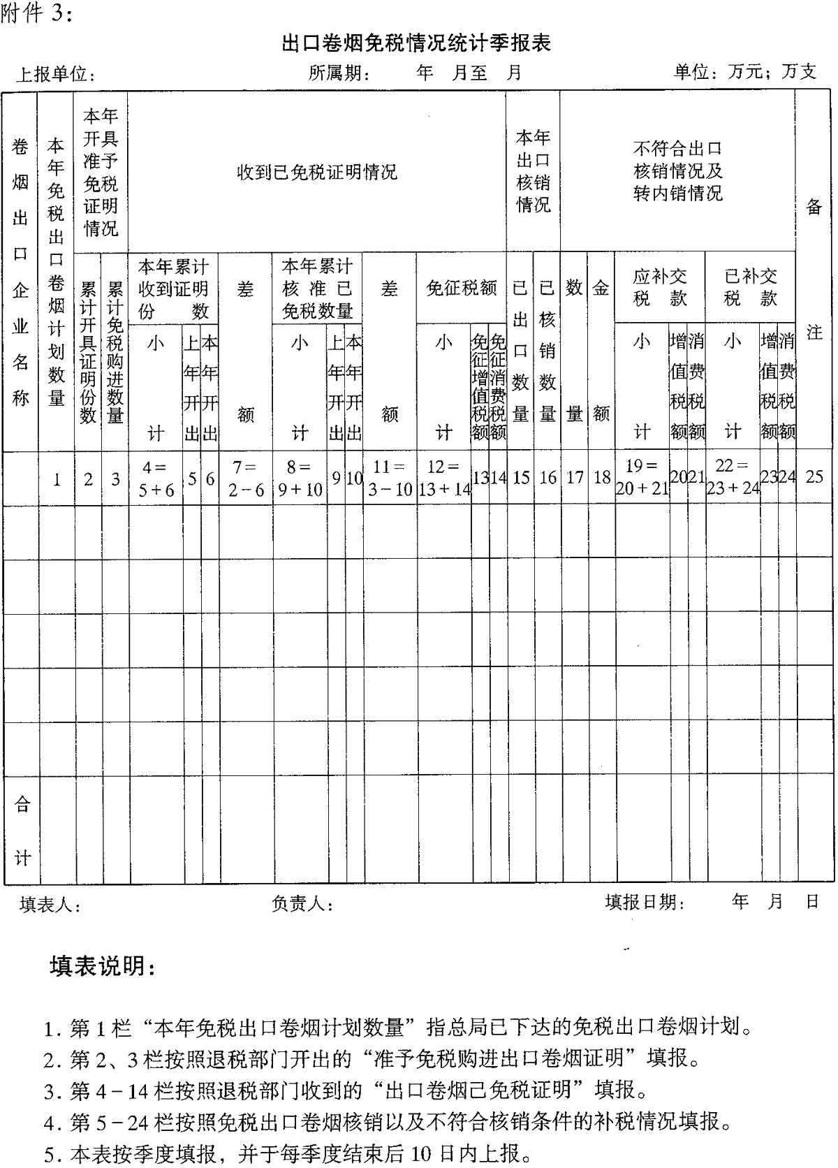 ????3.出口卷煙免稅情況統(tǒng)計(jì)季報(bào)表