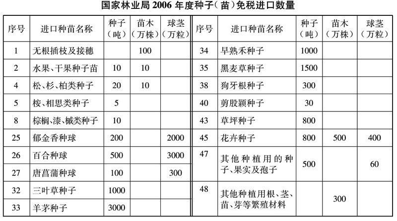 附件:1.國家林業(yè)局2006年度種子(苗)免稅進口數(shù)量