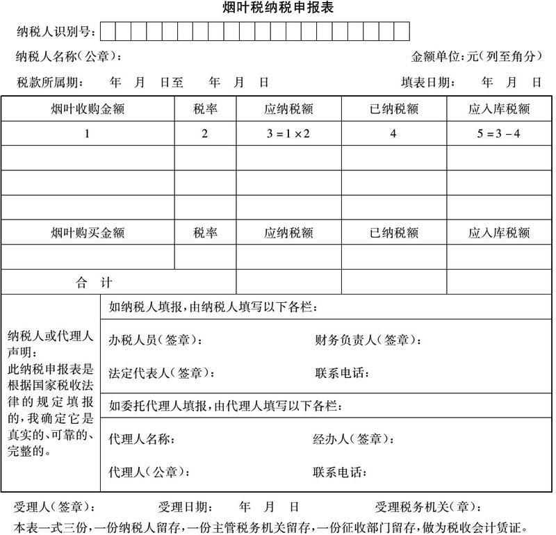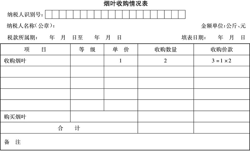 二、本表由在中華人民共和國境內(nèi)收購煙葉的納稅人在辦理納稅申報時報送。