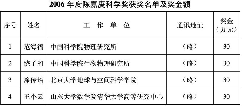 附件:2006年度陳嘉庚科學(xué)獎獲獎名單及獎金額