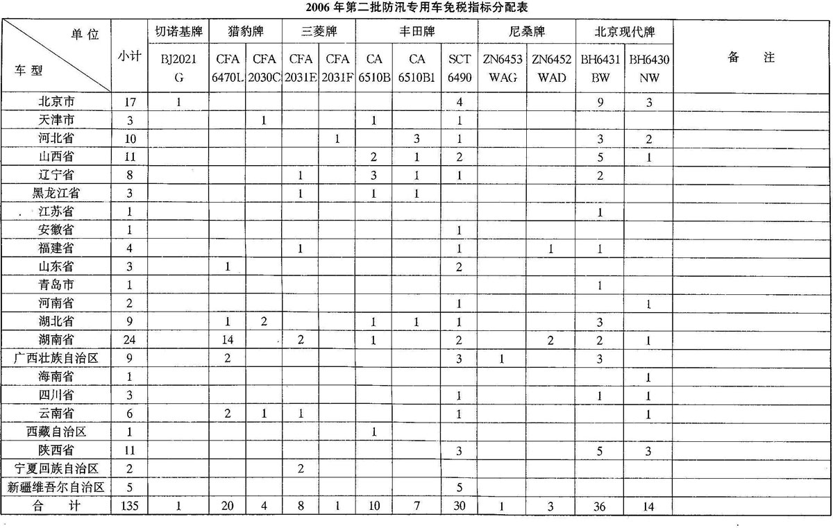 附件:2006年第二批防汛專用車免指標(biāo)分配表