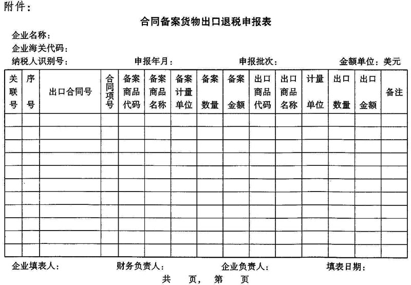 附件:合同備案貨物出口退稅申報(bào)表