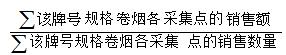 第十一條? 卷煙批發(fā)環(huán)節(jié)銷售價格,按照稅務(wù)機(jī)關(guān)采集的所有卷煙批發(fā)企業(yè)在價格采集期內(nèi)銷售的該牌號、規(guī)格卷煙的數(shù)量、銷售額進(jìn)行加權(quán)平均計算。計算公式為: