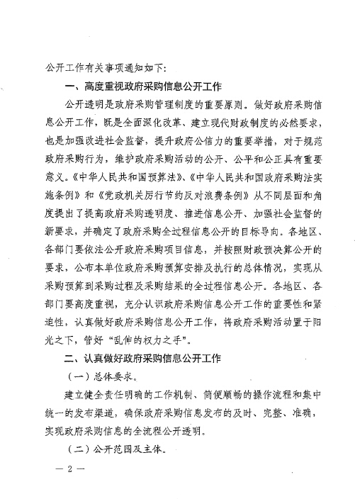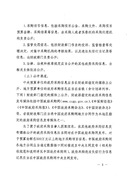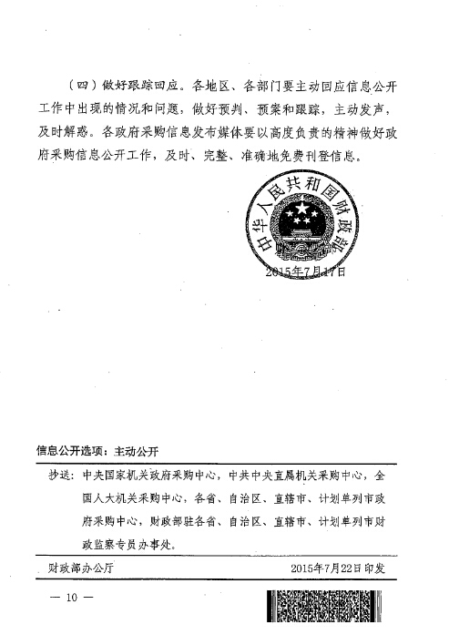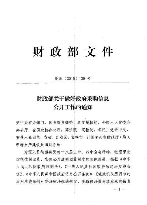 為深入貫徹落實(shí)黨的十八屆三中、四中全會(huì)精神,按照深化財(cái)稅體制改革、實(shí)施公開透明預(yù)算制度的總體部署,財(cái)政部近日印發(fā)了《財(cái)政部關(guān)于做好政府采購信息公開工作的通知》(財(cái)庫〔2015〕135號(hào)),現(xiàn)轉(zhuǎn)發(fā)給你們,請各單位高度重視政府采購信息公開工作,嚴(yán)格按照規(guī)定的信息公開范圍、主體、渠道、內(nèi)容和要求執(zhí)行。執(zhí)行中如有問題,請及時(shí)與稅務(wù)總局(集中采購中心)聯(lián)系。