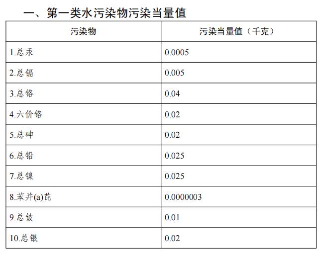 每一排放口的應(yīng)稅水污染物,按照本法所附《應(yīng)稅污染物和當(dāng)量值表》,區(qū)分第一類水污染物和其他類水污染物,按照污染當(dāng)量數(shù)從大到小排序,對(duì)第一類水污染物按照前五項(xiàng)征收環(huán)境保護(hù)稅,對(duì)其他類水污染物按照前三項(xiàng)征收環(huán)境保護(hù)稅。
