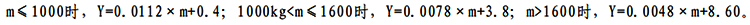 (2)插電式(含增程式)混合動力乘用車電量保持模式試驗的燃料消耗量(不含電能轉(zhuǎn)化的燃料消耗量)與《乘用車燃料消耗量限值》(GB19578-2021)中車型對應(yīng)的燃料消耗量限值相比應(yīng)當(dāng)小于70%;電量消耗模式試驗的電能消耗量應(yīng)小于電能消耗量目標(biāo)值的135%。按整備質(zhì)量(m,kg)的不同,百公里電能消耗量目標(biāo)值(Y)應(yīng)滿足以下要求: